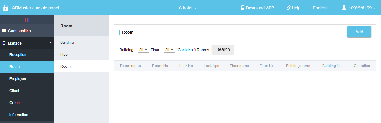 Step 1: select 'Room' — 'building' — 'add building' and input building information.