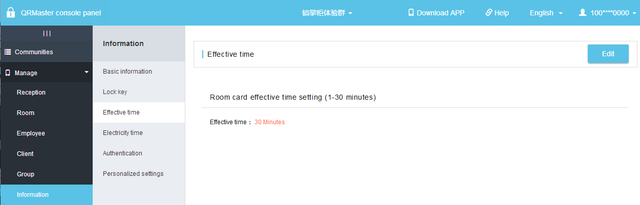 Select 'Information => Effective time => Edit' to set the effective time of QR code key.